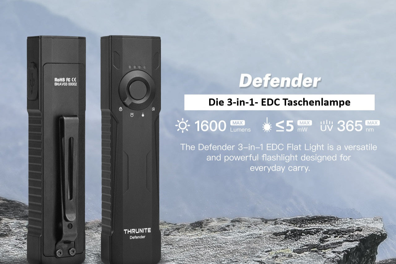 Thrunite Defender => 3-in-1 EDC Lampe mit 1600 Lumen in kaltweiss, UV-Licht und Laserpointer