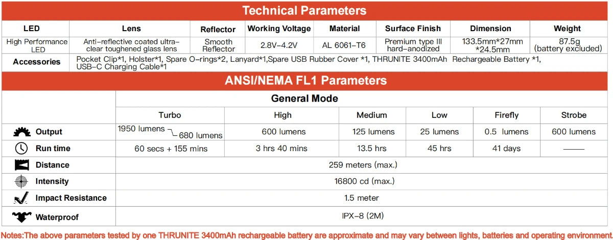 Der Dauerbrenner bei Thrunite, die TN12, ist in der neuesten Variante "V6" jetzt weiter fortgeführt worden. Mit 1950 Lumen und ca. 260 m Leuchtweite, die zuverlässigste und beste EDC LED-Taschenlampe.